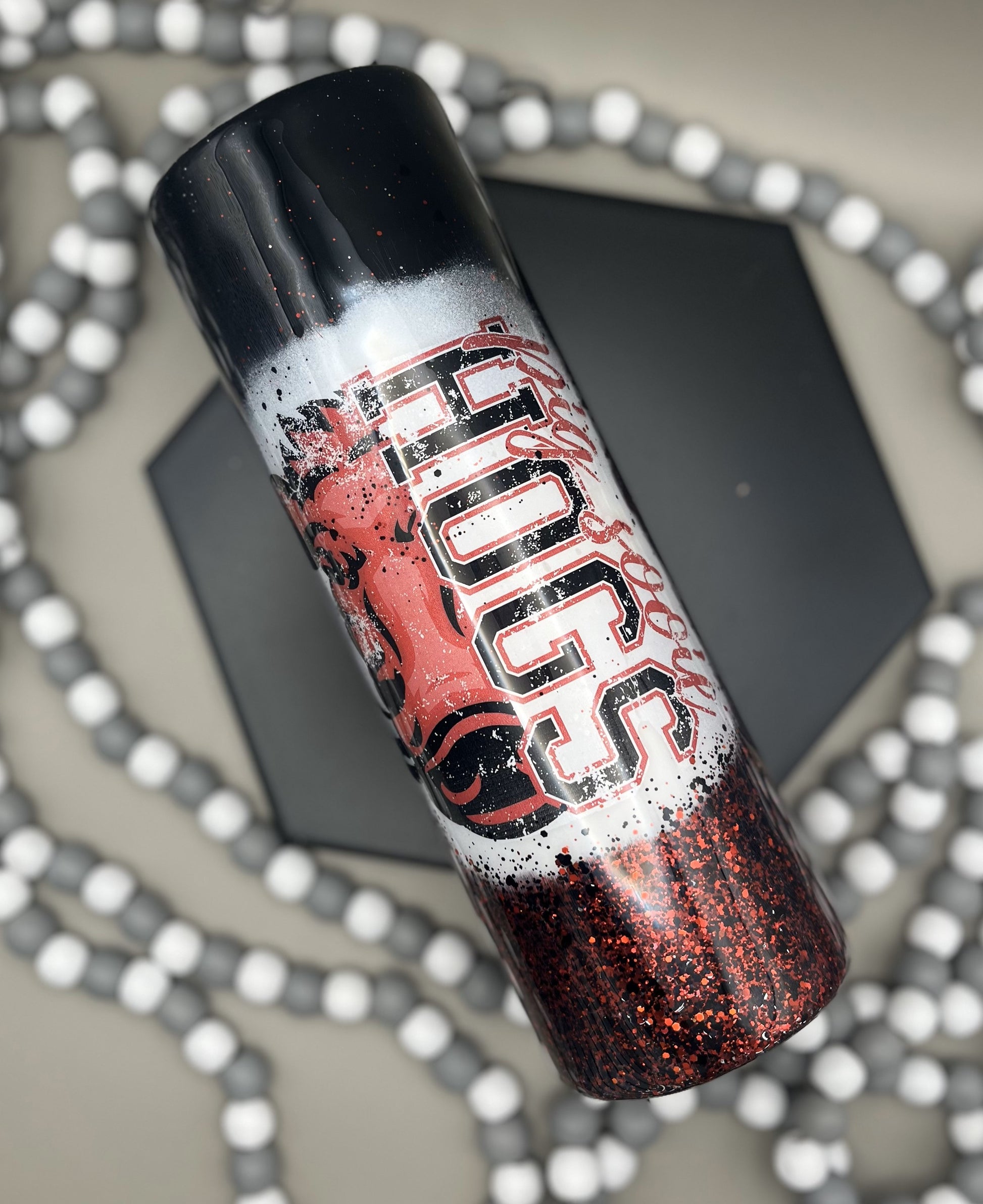 This 30oz tumbler is inspired by the Razorbacks of UofA. Includes