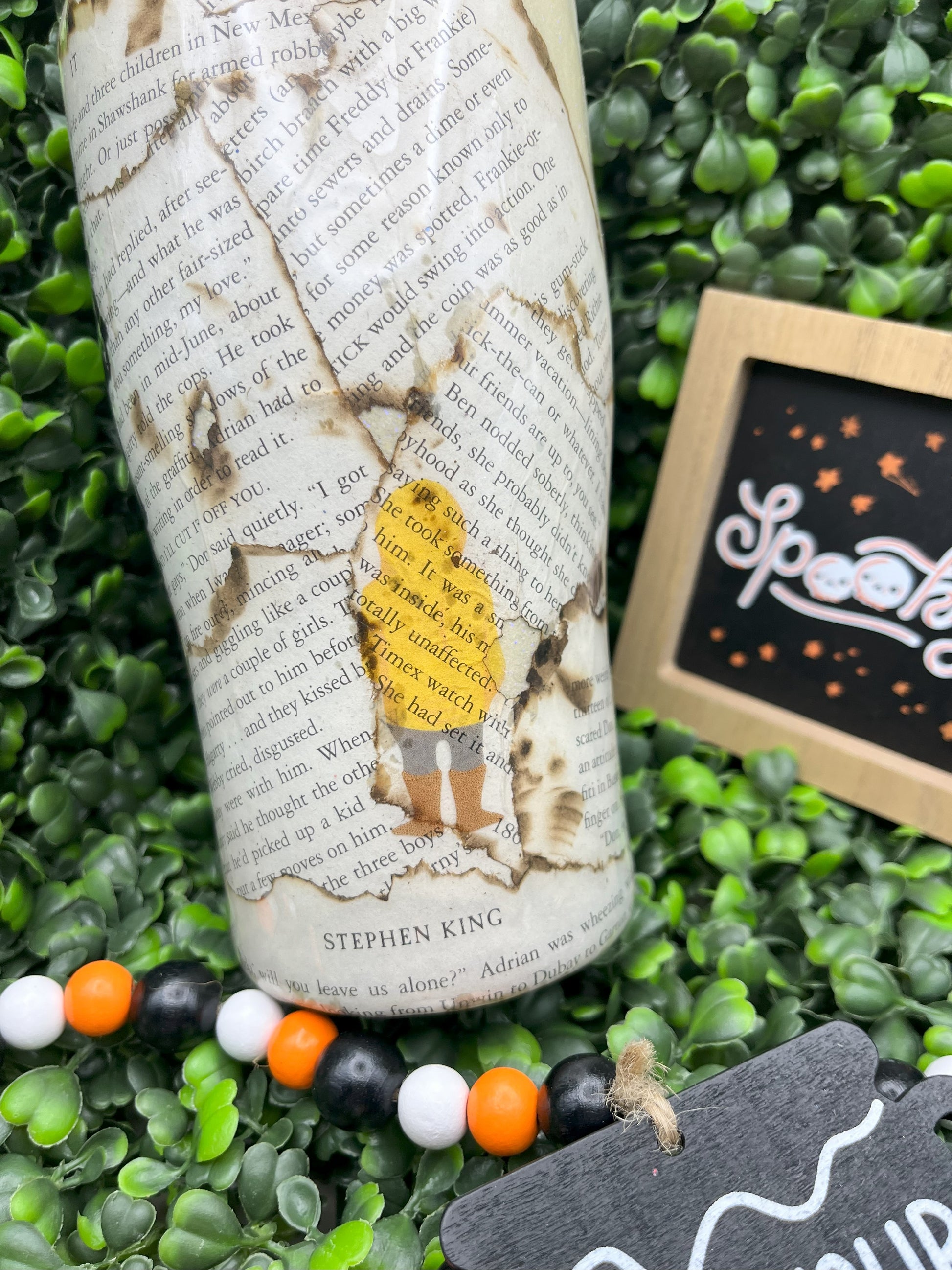 This 20oz tumbler is the perfect gift for the horror movie lover in your life or keep it for yourself. The cup is wrapped in actual burnt pages. The cup includes lid and straw.If you would like to add a name to it please reach out before you order.